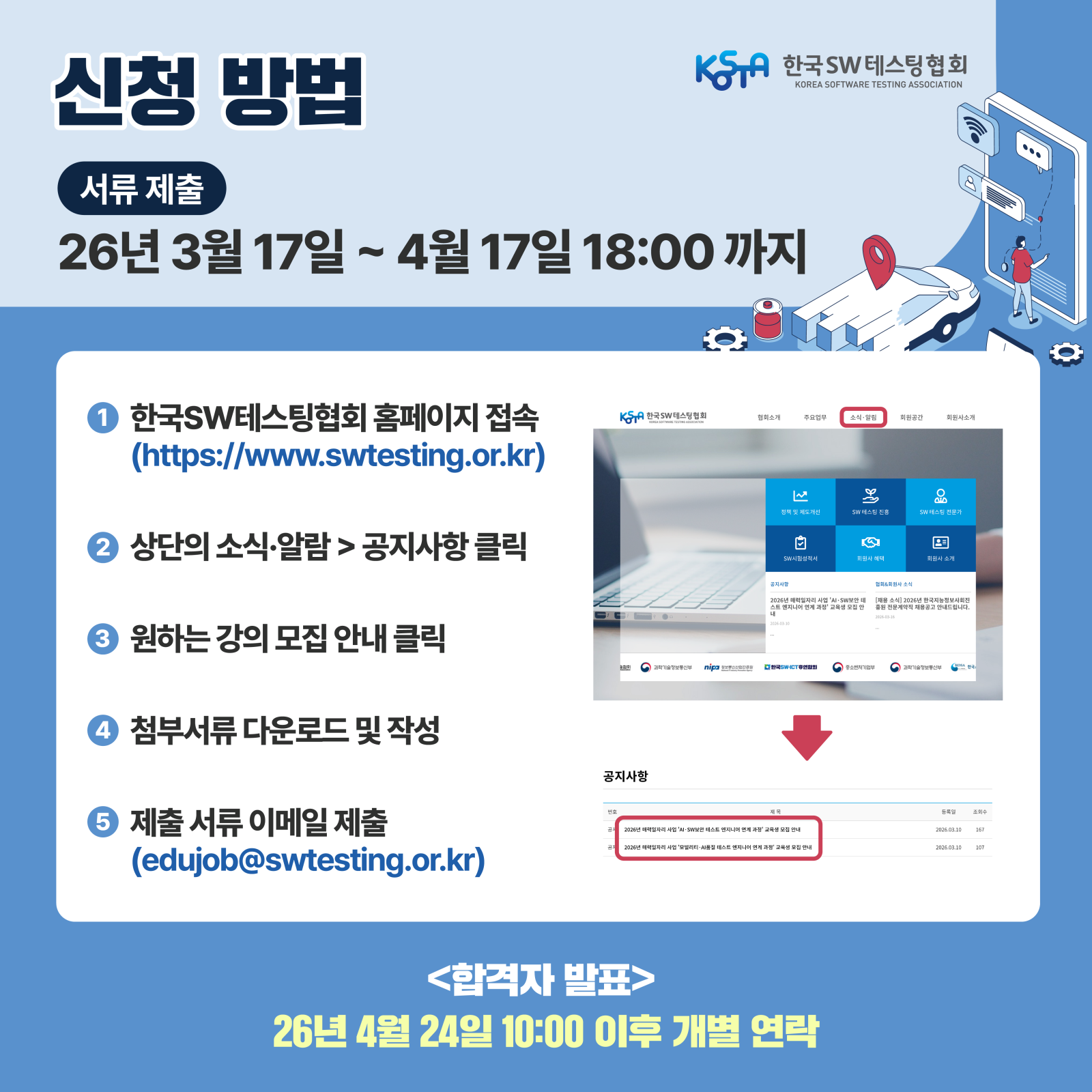 - 이메일 접수: edujob@swtesting.or.kr