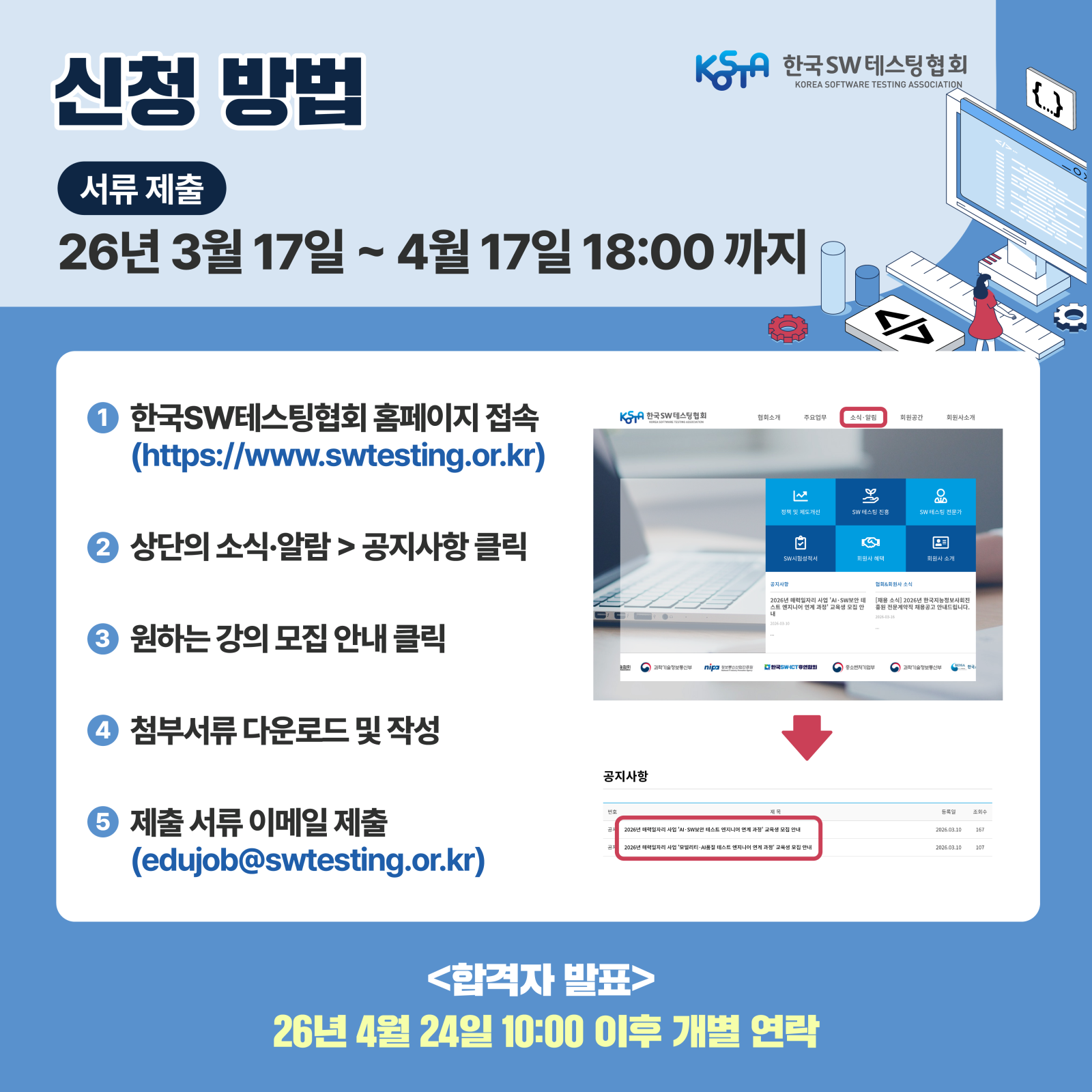공지 [한국SW테스팅협회] 정회원 가입 안내   2026.02.02