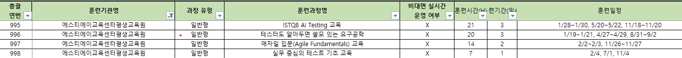 본 사업에는 여러 교육기관이 이 사업에 참여하고 있으며, 소프트웨어 테스팅 교육 뿐만 아니라 여러 교육과정이 있습니다.